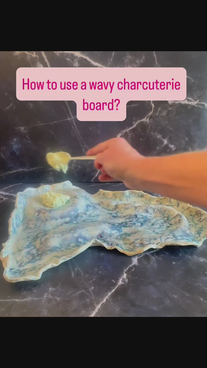 Crafted in porcelain and glazed for food-safety, it is perfect for hosting, gifting, or leaning glamorously on your countertop when not in use. No two are alike — each board is one-of-a-kind, just like your snack style.